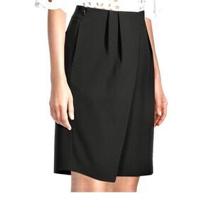 Model stats: 5'10" height, 32" bust, 25" waist, 36" hip. Model is wearing size 2 Asymmetrical draping and front pleats completes this pair of tailored shorts.