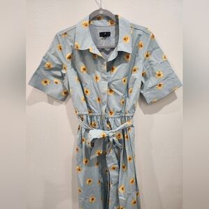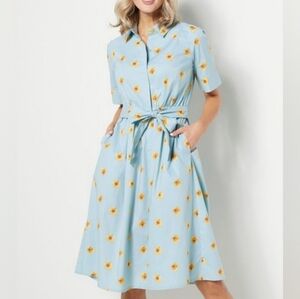 JASON WU BLUE & YELLOW SUNFLOWER SHIRT DRESS W/ COLLAR & TIE SZ MEDIUM PETITE MP
