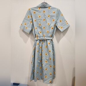 JASON WU BLUE & YELLOW SUNFLOWER SHIRT DRESS W/ COLLAR & TIE SZ MEDIUM PETITE