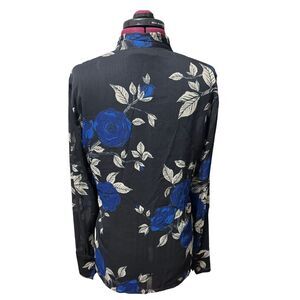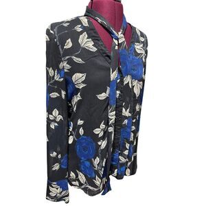 JASON WU COLLECTIVE Blue Floral Tie Neck Blouse Longsleeve Button Down Top EUC 8