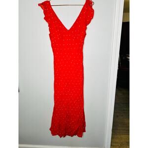 JASON WU COLLECTIVE Red Polka Dot Flutter Sleeve V-Neck Midi Dress Size 2
