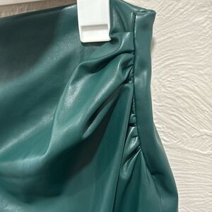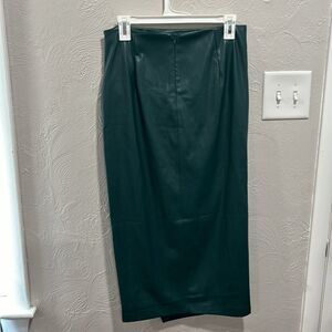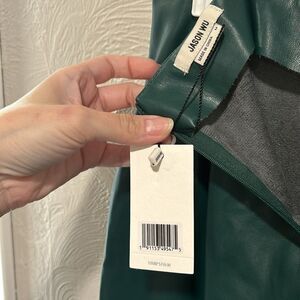 JASON WU Green Teal Vegan Faux Leather Ruched Pencil Skirt Size Medium NWT
