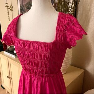 JASON WU Hot Pink Cutout Open Back Eyelet Midi Summer Dress Size Small