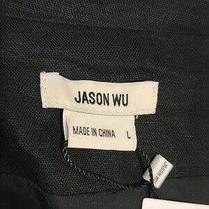 New Jason Wu linen blend cropped blazer size large. Long sleeved button front cropped waist blazer. Two small front pockets and pocket on chest. The color is black but looks almost blue.