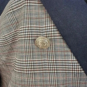 JASON WU NWT SZ M Cropped Blazer Navy w/ Gray Glen Plaid, Double Breasted CLASSY