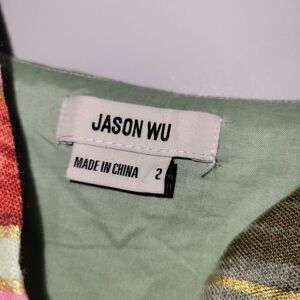 JASON WU Tropical Linen Blend Faux Wrap Front Midi Dress Green Pink Red Size 2