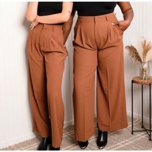 JASON WU Essential Pants Brown Pleat Front Wide Leg High Waist