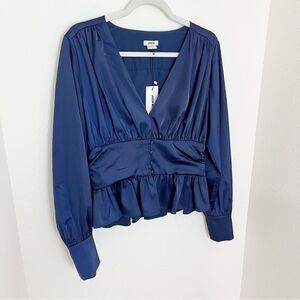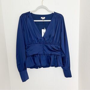 JASON WU NWT Navy Blue Satin Long Sleeve Blouse