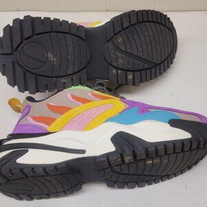 Like-new vibes, worn only a few times — colors still pop, no creases, scuffs, or sole wear. Premium suede + mesh upper, chunky platform sole, padded collar. Super comfy & eye-catching street style.