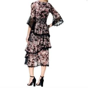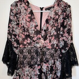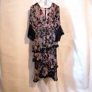 🌹JAX BLACK LABEL FLORAL BLACK LACE V NECK DRESS