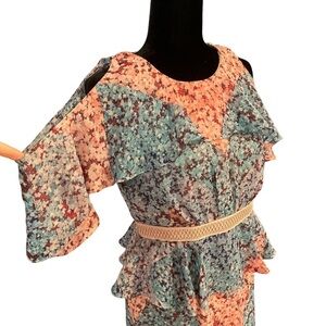 JAX Black Label Women's Blue Pink Floral Printed Cold Shoulder Dress size 4