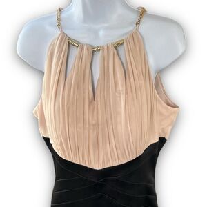 JAX Black & Pink Nude Stretchy Zip Up Dress With Gold Chain Size 10 New