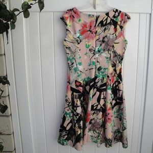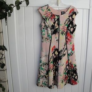 JAX Crew Neck Cap Sleeve Zipper Back Piping Detail Floral Print Scuba Lined Dress