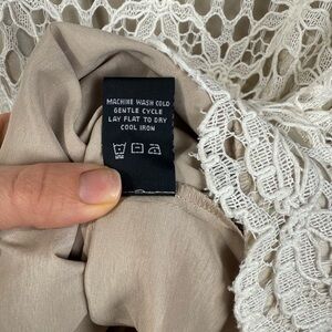 JAX women’s champagne gold & floral ivory lace overlay shift dress. Size 12. NWT. This dress is absolutely gorgeous and would be perfect for a bridal shower, or related event. Pull on style with a button closure in the back.