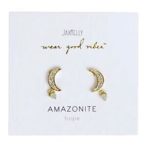 JAXKELLY NIP Amazonite Stone White CZ Moon Drop Sterling Silver Posts Earrings