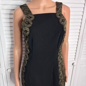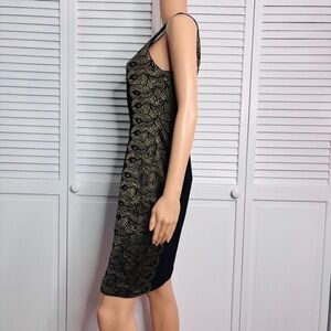 Details: JAY GODFREY Black Gold Illusion Sleeveless Bodycon Sheath Cocktail Party Dress