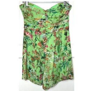 JAY GODFREY Floral Pleated Chiffon Strapless Faux Wrap Top High Waist Romper 6