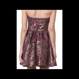 Metallic and paisley jacquard dress, sweetheart neckline, boning in bodice, fully lined.