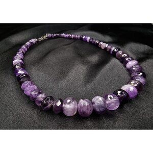 Elevate your style with this exquisite Jay King creation, showcasing genuine faceted amethyst gemstones in a rich spectrum of purples — from deep violet to soft lilac. Each bead is hand-cut to reflect light beautifully, resulting in a luxurious, radiant finish.