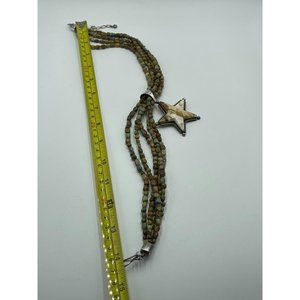 Noted as a Vintage HSN "Jay King" DTR "Mine Finds" Piece (Style Name & No. "Unknown"); This Unique Beauty features an Adjustable 5-Strand Turquoise Necklace w/ 925 Sterling Findings, along w/ a Large 5 Point Star Pendant Slide housing a heavily polished piece of Jasper w/in a Substantial 925 Sterling Frame; Necklace Fastens at Reverse via an Unusual Hook Clasp as Shown.