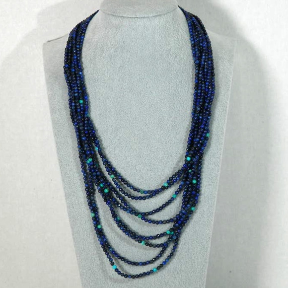 JAY KING STERLING SILVER LAPIS TURQUOISE MULTI STRAND BEAD NECKLACE 925