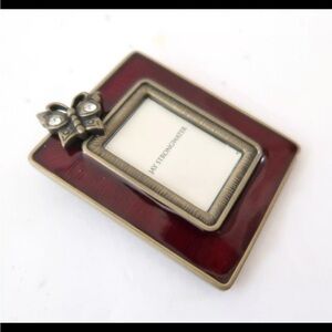 Jay Strongwater enamel photo frame clip pin with butterfly in top corner.