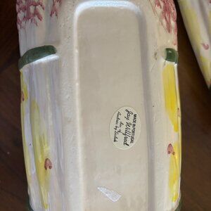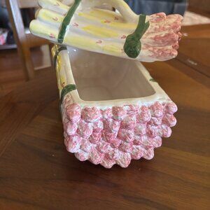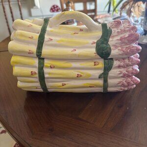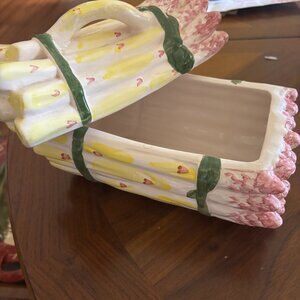 JAY WILLFRED ANDREA BY ZADEK. Asparagus dish made in Portugal. It is 9 x 5 x 6 colors are pink yellow with tiny hearts is preowned but in excellent condition.  HAND PAINTED. A COLLECTION PIECE. SOME OF HIS PIECES SELL FOR OVER $300.