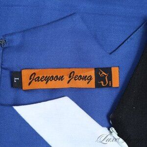 JAYEYOON JEONG OCEAN BLUE DRESS WITH WHITE AND BLACK NECK ZIPPER DETAIL L