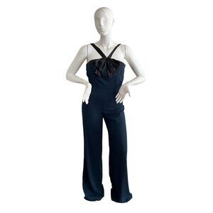 JAYGODFREY Wide Leg Dryden Black Satin Bow Navy Jumpsuit 8