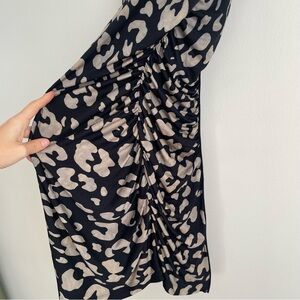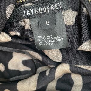 JAYGODFREY leopard animal print silk mini dress zipper back black 6 mob wife
