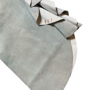 Stylish gray suede pants featuring a unique flared design with ruffle details. Perfect for adding a touch of elegance to any outfit.