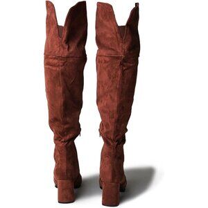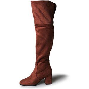 🆕J.Adams Brown Vegan Suede Over The Knee Trendy Low Block Heel Thigh High Boots