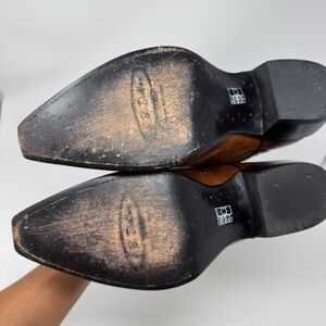 Step out in classic Western style with these gorgeous pre-owned J.B. Dillon women's cowboy boots! Crafted from premium brown goat leather, these boots feature intricate turquoise embroidery detail, adding a unique touch to their timeless Western design. Handmade in León, Mexico, known for its master leather artisans, these boots offer both authentic style and quality craftsmanship.
