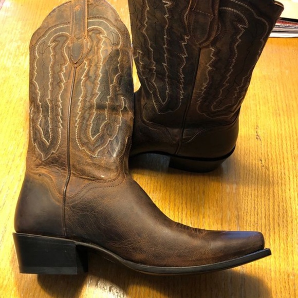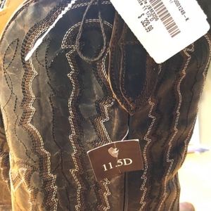 Brand new, only worn once to try them on (came with another set I bought). These boots were bought in Nashville, and are real authentic boots. New, they are $330.00, but I'm dropping the price to $300. They still have the price tag on them, and they are size 11.5. Goes well with dark jeans and a business casual dress for a fun night out!