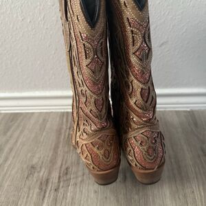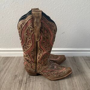 JB Dillion leather glitter pink inlay western boots. Size 7.5