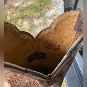 Stylish brown leather boots. Intricate stitching design. Perfect for a western look.