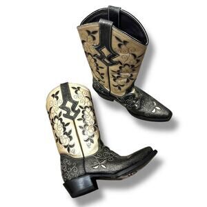J.B. Dillon Calf Pointed Toe Black Gold Cowhide Leather Western Cowboy Boots 7.5