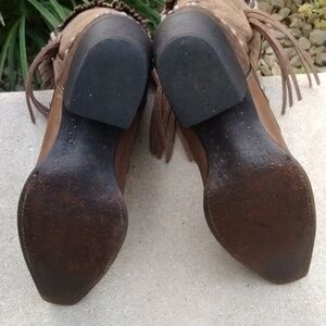 J B Dillon Goatskin Cowgirl boots with fringe, size 9.5, last picture shows inside of left boot a rivet missing