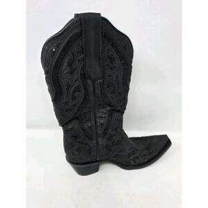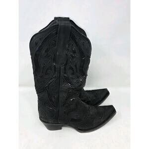 JB Dillon Reserve Womens Cowgirl Leather Boot Black Sequin Poppy Sz 7.5B