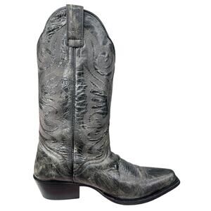 J.B. Dillon Women’s Grey Black Distressed Leather Cowgirl Boot Size US 7 B