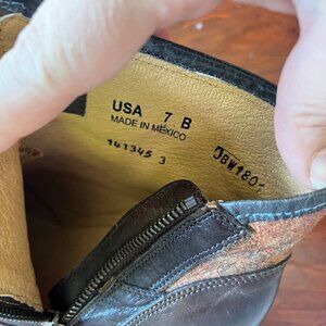 J.B. Dillon Women's Leather Western Ankle Boots With Paisley Design- sz 7