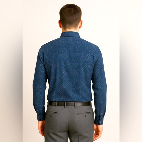 Upgrade your wardrobe with this stylish J.B. Holt men’s long sleeve button-up shirt, perfect for both casual and business casual occasions. Made from soft, breathable polyester, this shirt features a modern navy blue color with an all-over hexagonal geometric print in light blue and subtle yellow accents. The sleek design pairs effortlessly with dress pants or dark denim, making it versatile for work, dinners, or date nights.