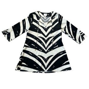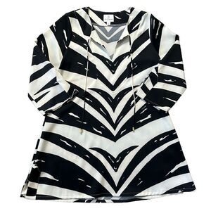 JB Julie Brown NYC Black & White Abstract Split Neck Dress Size 4