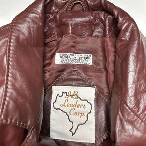 JB Leaders Corp Men's Leather Jacket Size 48 Maroon Lined Pockets Vintage good preowned condition it is wrinkled but didnt want to try and iron it.