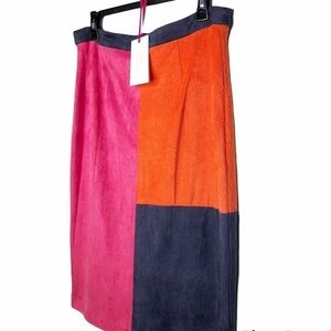 JB by JULIE BROWN NWT Henley House Party Color Block Faux Suede Skirt Size Large