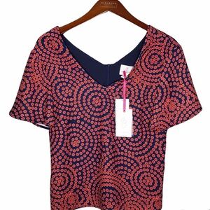 JB by JULIE BROWN NWT Samantha Lily Pond Zip Back Top Size 6 in Red and Navy