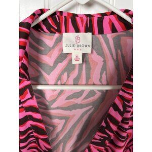 JB by Julie Brown Rizzo Wrap Dress Zebra Print Womens XS Pink Preppy Stretch