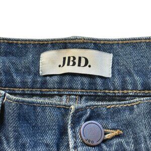 FEATURES: Classic denim mini skirt by JBD (Just Black Denim) / Made from 100% cotton / Features include a mid-wash blue, A-line silhouette, and a stylish frayed raw hem.