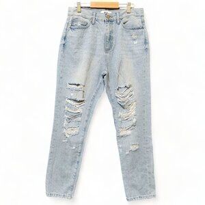 Just Black Denim Mom Jeans Womens Size 27 100% Cotton Light Blue Distressed