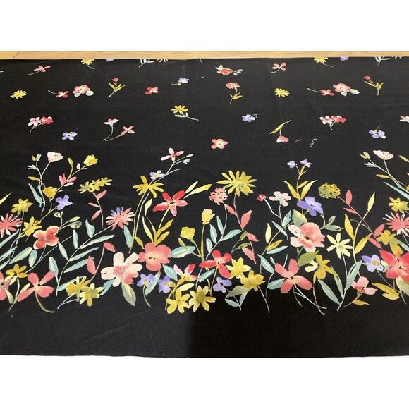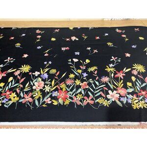 JBJ Fabrics Cotton Blend Border Print Fabric with Black Background and Florals